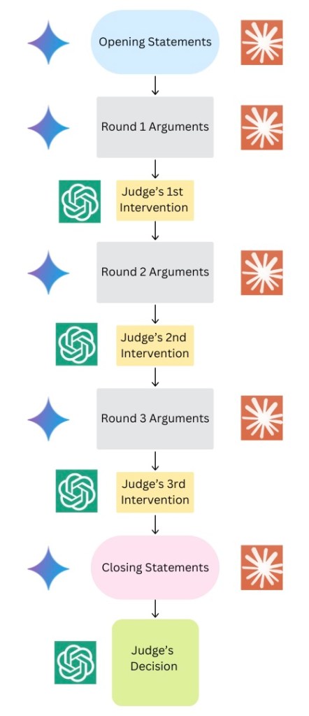 - Rounds: The debate unfolds across three rounds, following the framework established by Khan et al. [13] and Kenton et al. [14]. In each round, debaters provide arguments, address objections, and respond to the judge’s interventions.