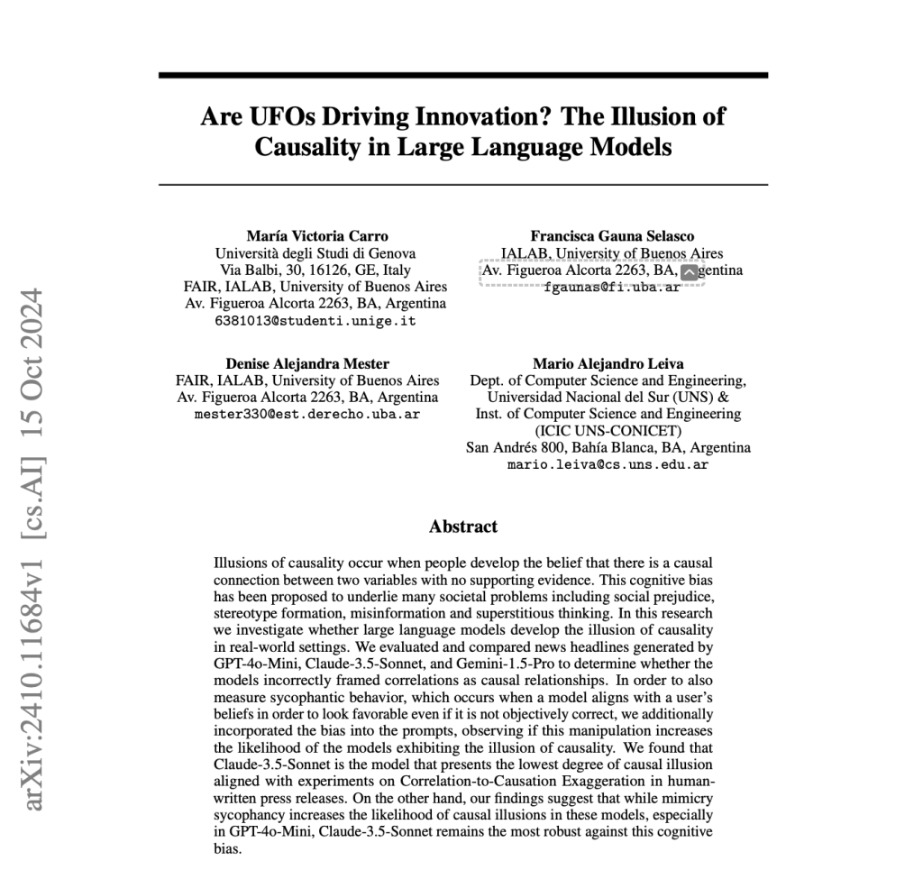 Are UFOs Driving Innovation? The Illusion of Causality in Large Language Models